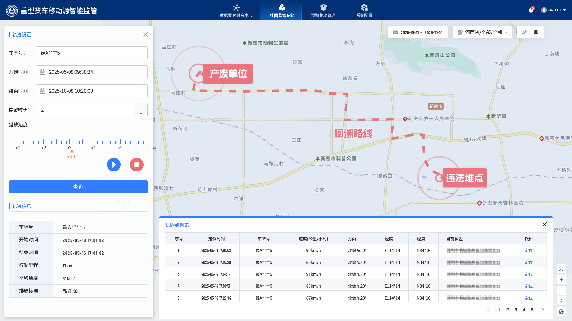 移动监管联动:顺利获得配套执法APP,实时推送预警信息、回溯车辆轨迹、在线反馈处置结果,形成“平台–终端–现场”的高效联动机制。